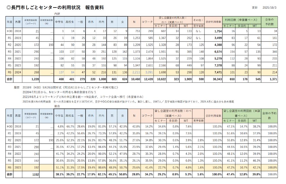 【利用】R6年度長門市しごとセンターのご利用について 計7,471名にご利用いただきました。