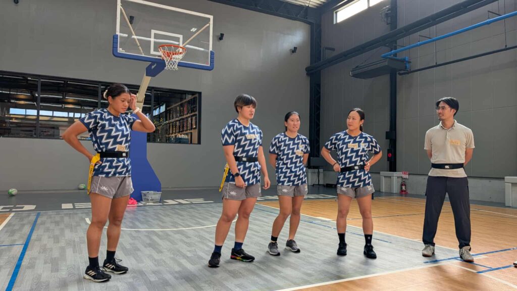 「ブルーエンジェルスには、オーストラリア、ニュージーランド、カナダ、オランダ、ブラジルetcetc.など様々な国からラグビーをしにメンバーが集まっています。私自身はフィジーのルーツの中で、日本とフィジーに思い入れがあるのですが、わたしの生きてきた世界なんてほんのこのくらい(手で小さく囲って)で、世界は広いんだなあと視野が広がる思いです。今日、皆さんとも出会いましたが、スポーツを通じて世界が広がっていくのを一緒に楽しめるとよいです」