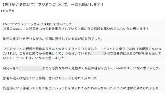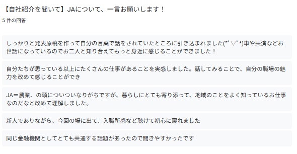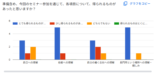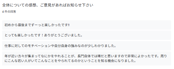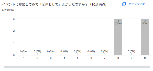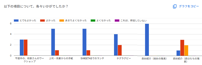 7名参加で6名の方に回答いただきました。どなたかおそらく「送信」を押さずに閉じられたのではないかと想像しています。