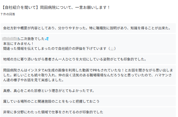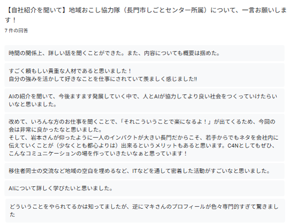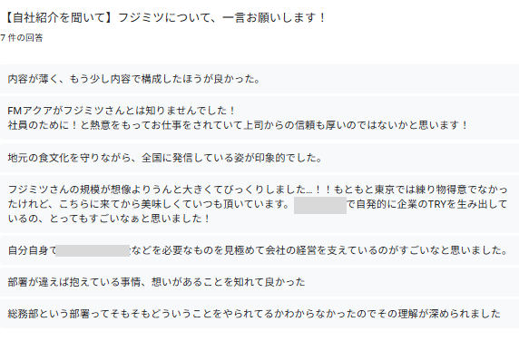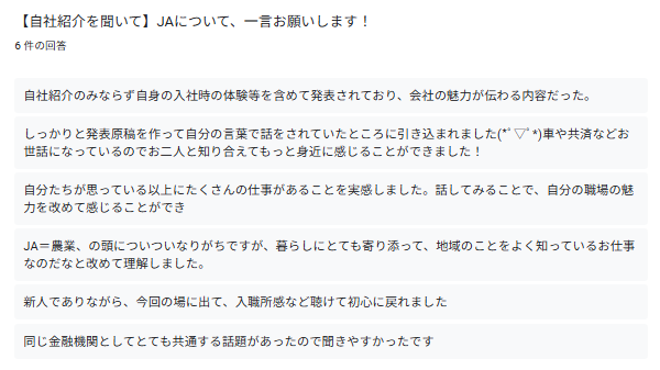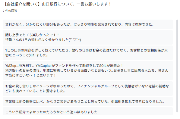 7名参加で皆さんにご回答いただきました。ありがとうございます。
