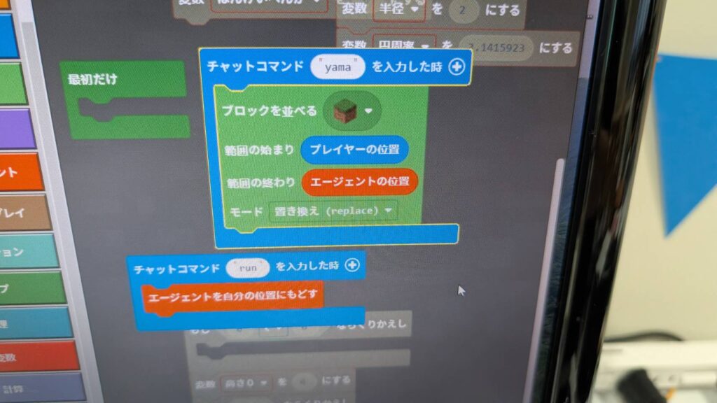 という事で!コードを使って「やま」を作るチャレンジ!(パソコンでマイクラ本日2回目のニンジャ)