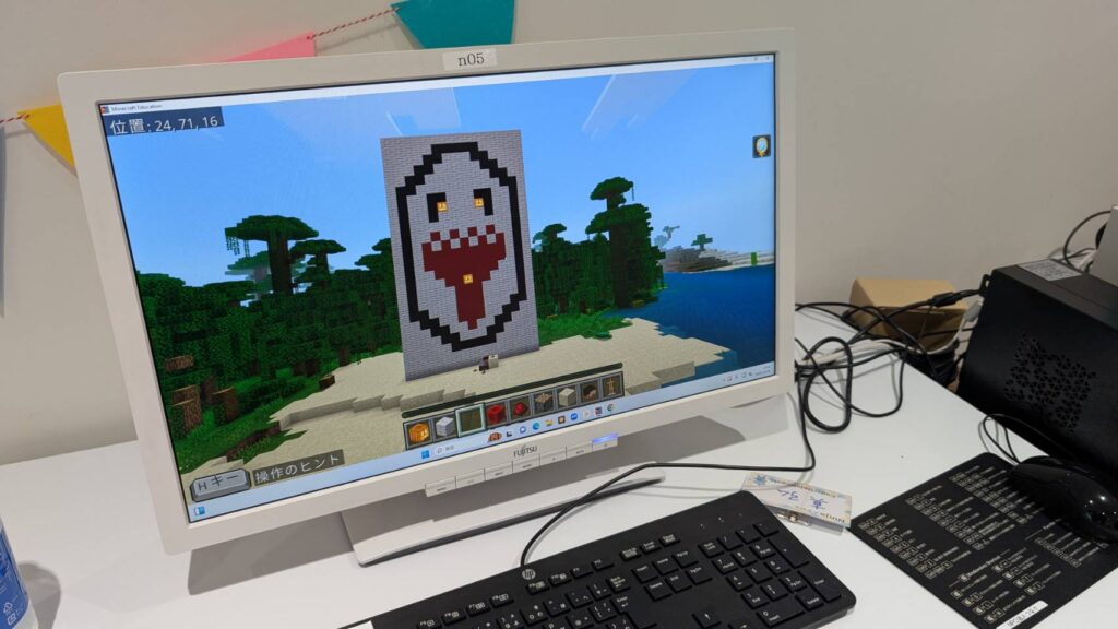 マイクラで大きな「マージャン」の牌の絵を「おばけ」にしたそうです。