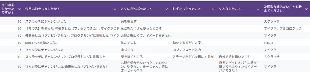 みんな、お題に沿ったものを作ろうと一生懸命で、発表を見てて楽しかったです。