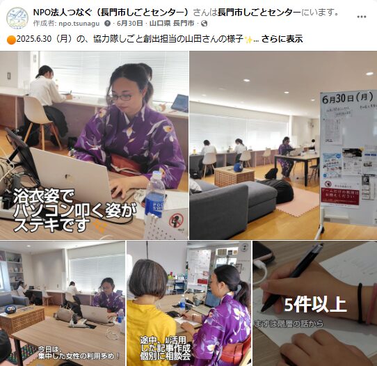 長門市地域おこし協力隊として、ここ「長門市しごとセンター」を中間支援団体として、山田真希さんが赴任しています!