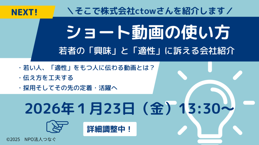 ◎2026年1月23日(金)13:30~15:30 参加企業向け事前説明会/ 若手採用に向けたセミナー @長門市しごとセンター