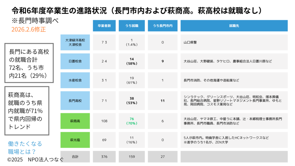 6月の就職フェアの際に、企業の方から「可能な限り、長門の人材を雇用したい」との声をいただきました。
