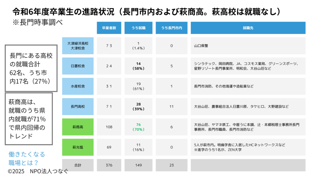 加えて、長門の地域の企業の方から「都市部に給与で負ける」との話を聞くことが多々あります。正直、それは少なからずあると思います。