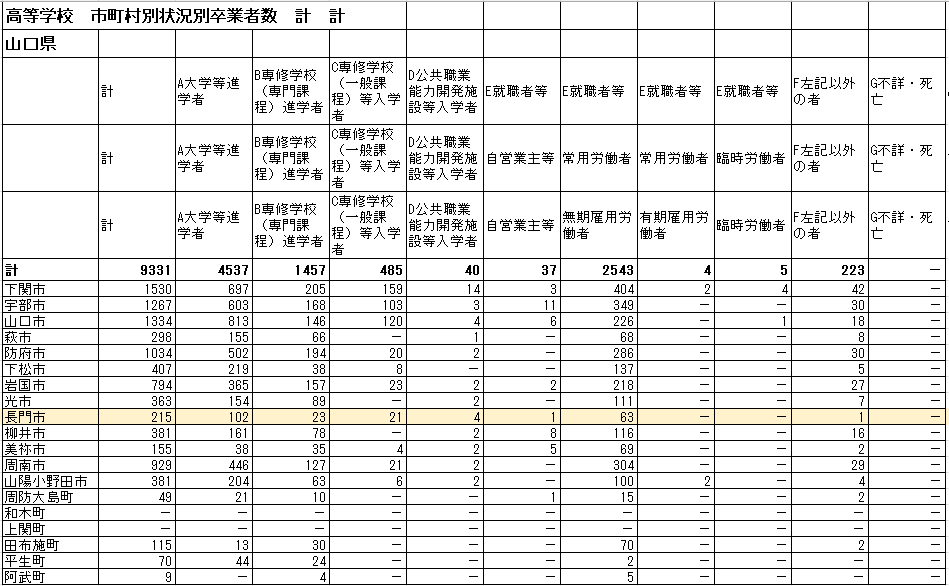 特徴:「学校が所在する市町村」ごとのデータであるため、その地域の高校生がどう動いたかを把握するのに適しています。