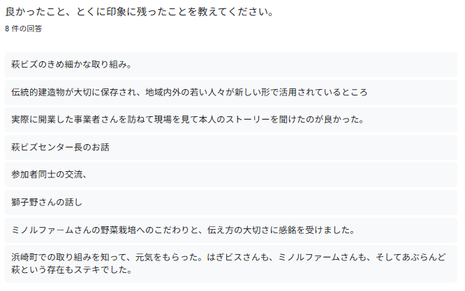 | 小規模事業者にここまで寄り添って支援してくれるのかと驚いた。萩市外の事業者でも相談可とのこと、機会があれば相談してみたい。 |