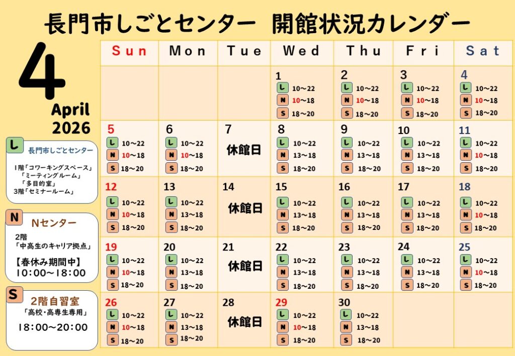 こんにちは。長門市しごとセンターです。 令和8年度(2026年度)も変わらず、よろず相談※の方に、「長門市しごとセンター」へ出張相談にて、お越しいただきます。(無料…