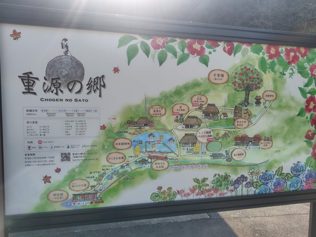 公式HPより:山口市東部・徳地にある健康長寿をコンセプトにした観光施設です。最奥には樹齢800年の千年椿があり、パワースポットとしても人気です。