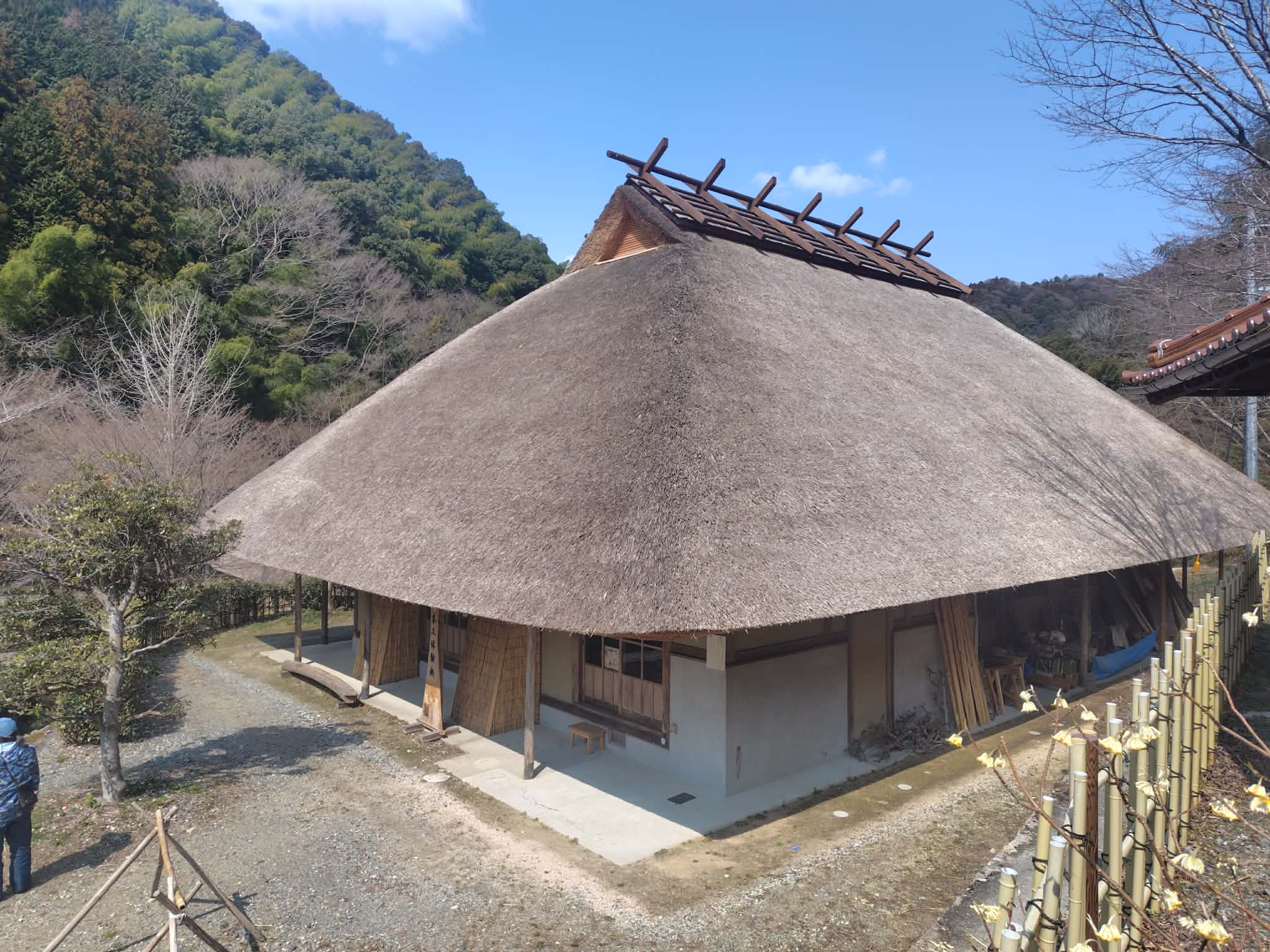 ↓リニューアルに向けて、全国から職人さんに来てもらい、ふきなおしたというかやぶき屋根の家が3軒!すごく立派で重厚感あって素敵でした。