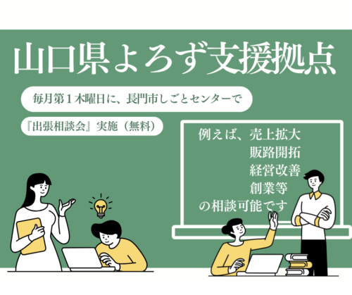 よろず支援は12年前から始まった国の事業です。山口県では、やまぐち産業振興財団の事業として実施されています。