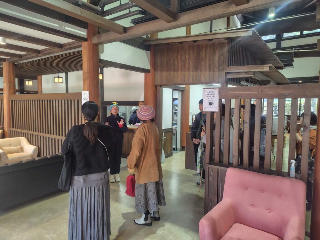 ↓重源の郷の「歓迎館(重源の郷に入場するための受付や、お土産の購入などもできる場所)」で複数名が木炭を購入!