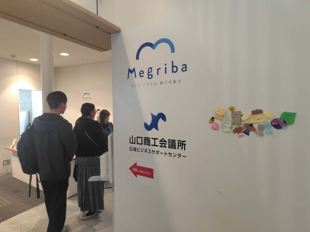 その後、山口市が設置している「産業交流スペースMegriba」さんにて、コワーキングスペースやチャレンジショップ、撮影・動画作成などを行うブースを見学させていただきました。