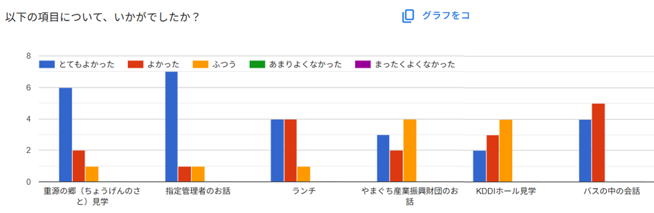・今日は想定していたよりボリューム満点で各場所での時間がもう少し有ればいいなと感じました。中々個人ではこういう機会はないので参加してみて実際の現場のお話しや運営の仕方は参考になりました。