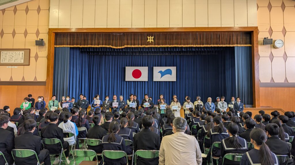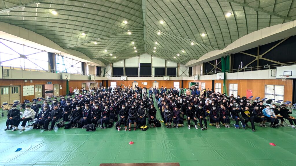 2026年3月17日(火)の9時から12時にかけて、長門市内の全5中学校(深川・仙崎・三隅・日置・菱海)の1年生が一堂に会する、これまでにない規模のキャリア教育イベントが開催されました。場所は、深川中学校です!