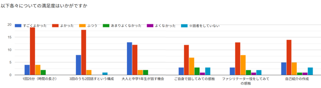 ・ファシリテーターの間は1回聞けたので、ほかの大人の話も聞きたいと感じました。