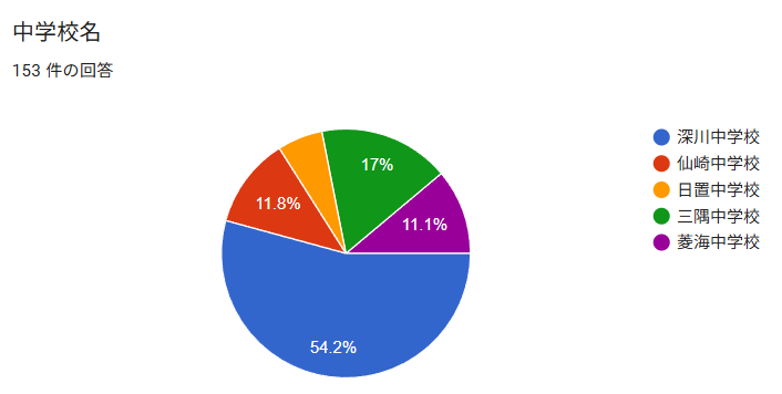 今回は、深川中学校さんが場所を貸していただけることになり、前日の設営や掲示物の貼りだし、当日の片付けを深川中の1年生も一緒にやってくれました。たくさんの教室を使えるようにご尽力いただきました。本当に助かりました。誠にありがとうございます。