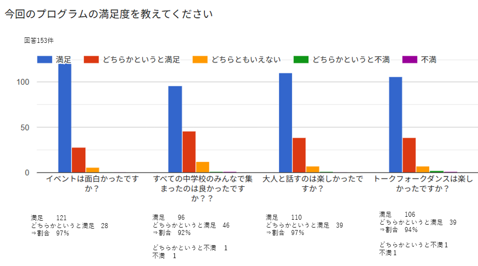 生徒アンケートでは、「満足」という回答が圧倒的多数。他校の生徒との交流も刺激になったようで、「移動中に他校の子に場所を教えて友達になれた」という嬉しいエピソードも届いています。