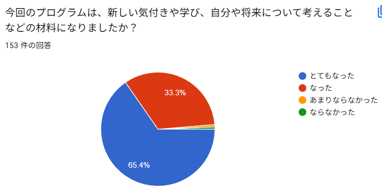 ・多くの人が関わっていることで、さまざまな価値観を持っている大人に出会える仕組みがあり、教科書通り行かなくてもいいんだと参加する生徒に伝わっていたこと。