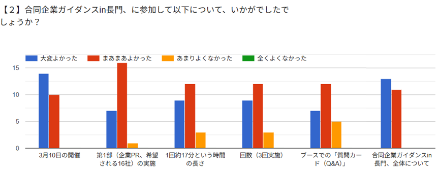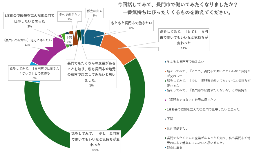 | 10 | 興味があるところの話が詳しく聞けてよかった | 話をしてみて、「少し」長門市で働いてもいいなと気持ちが変わった |