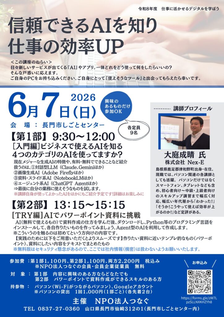 2026年6月7日(日)信頼できるAIを知り仕事の効率UP