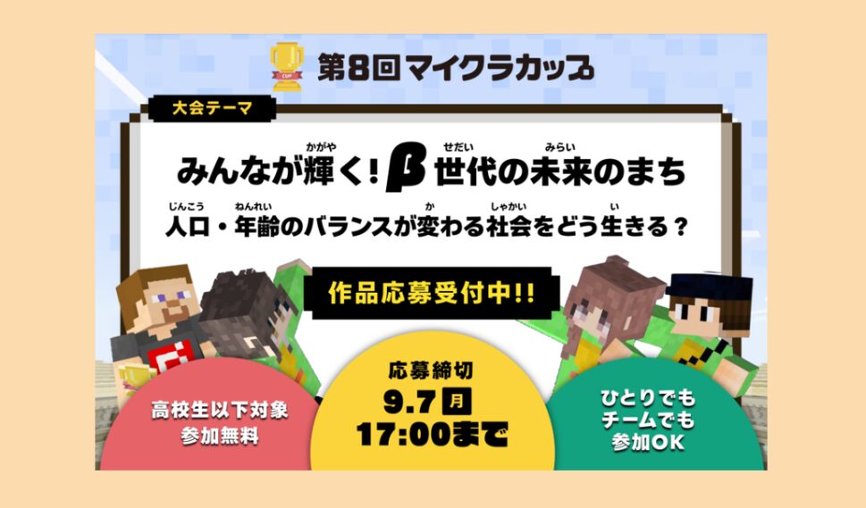 ※アカウントの取得や、自宅からマイクラカップへ挑戦するための支援(オンラインでの勉強会)支援が受けられます。
